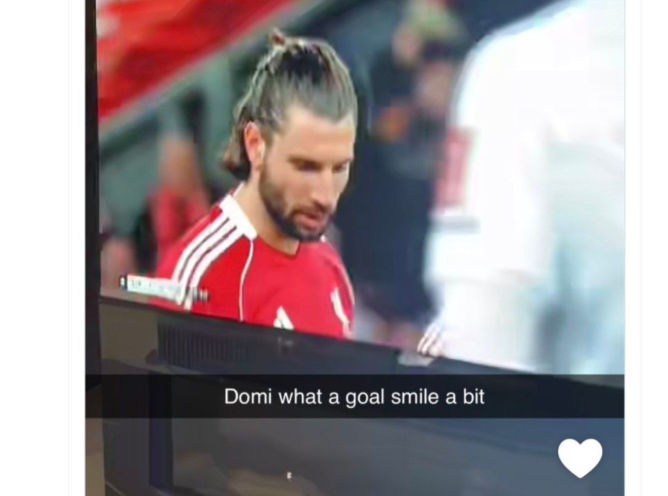 I en Snapchat-historie tog den norske landsholdsspiller et billede af sit TV, hvor han så Liverpool-kampen, og tilføjede: “Domi, sikke et mål, smil lidt.”