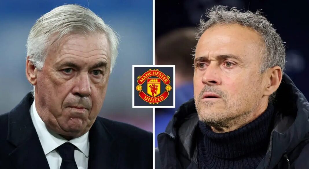 Brasiliens manager Carlo Ancelotti og Paris Saint-Germains manager Luis Enrique er begge blevet sat i forbindelse med jobbet med Manchester United.